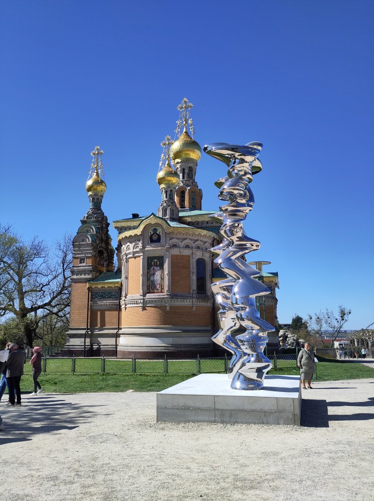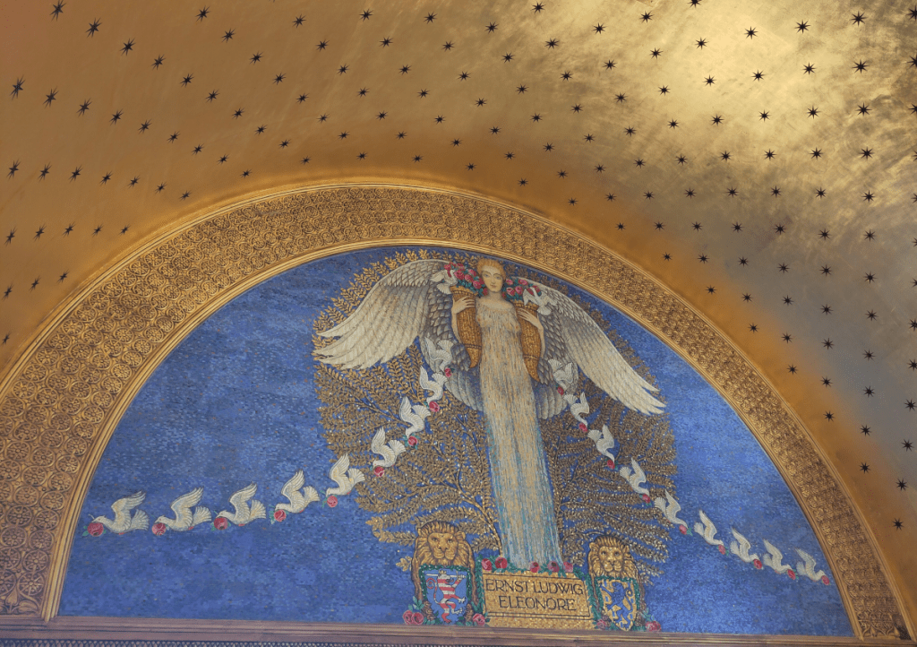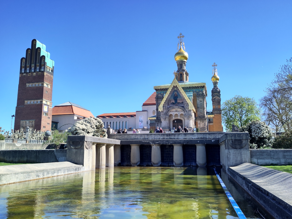 Sie ist sicherlich das auffälligste Gebäude auf der Mathildenhöhe und sie war auch das erste auf dem Gelände. Ich konnte sie nicht von Innen sehen, da ich unpraktischerweise am Sonntag dort war und ein Gottesdienst stattfand. Da kann aber dieser Link helfen.