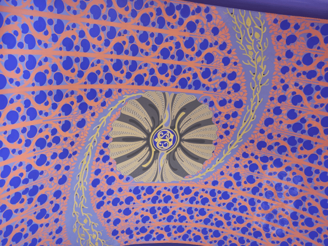 Dass das Muster aus Eidechsen besteht, die sich zwischen Schneckenhäusern schlängeln wäre mir nicht bewusst geworden – dafür gibt es aber ja glücklicherweise Hinweisschilder. Was dieses Motiv zu bedeuten hat, wurde allerdings nicht erklärt, das wollte ich aber unbedingt wissen. Gefunden habe ich folgendes: